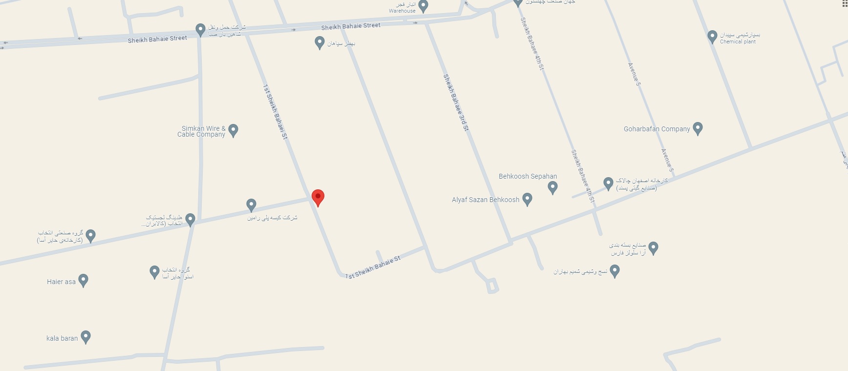آدرس کارخانه: اصفهان شهرک صنعتی مورچه خورت خیابان شیخ بهایی 1 پلاک 117/1
